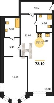 Площадь от 72.7 м2